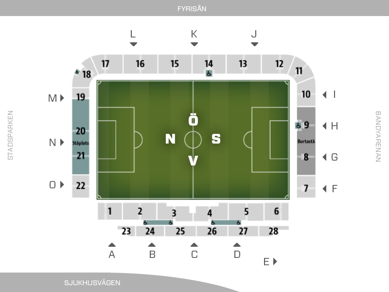 Bussar/Minibussar: Informera SLO om ni vill parkera i anslutning till bortasektionen. Gäller i mån av plats.