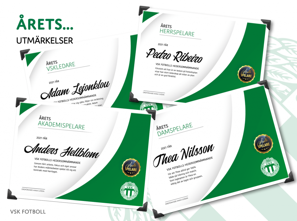 Hedersomnämnanden för årets ledare, herr- och damspelare och akademispelare delades också ut till personer som på ett föredömligt sätt följer vår värdegrund och gör skillnad både på och utanför planen.