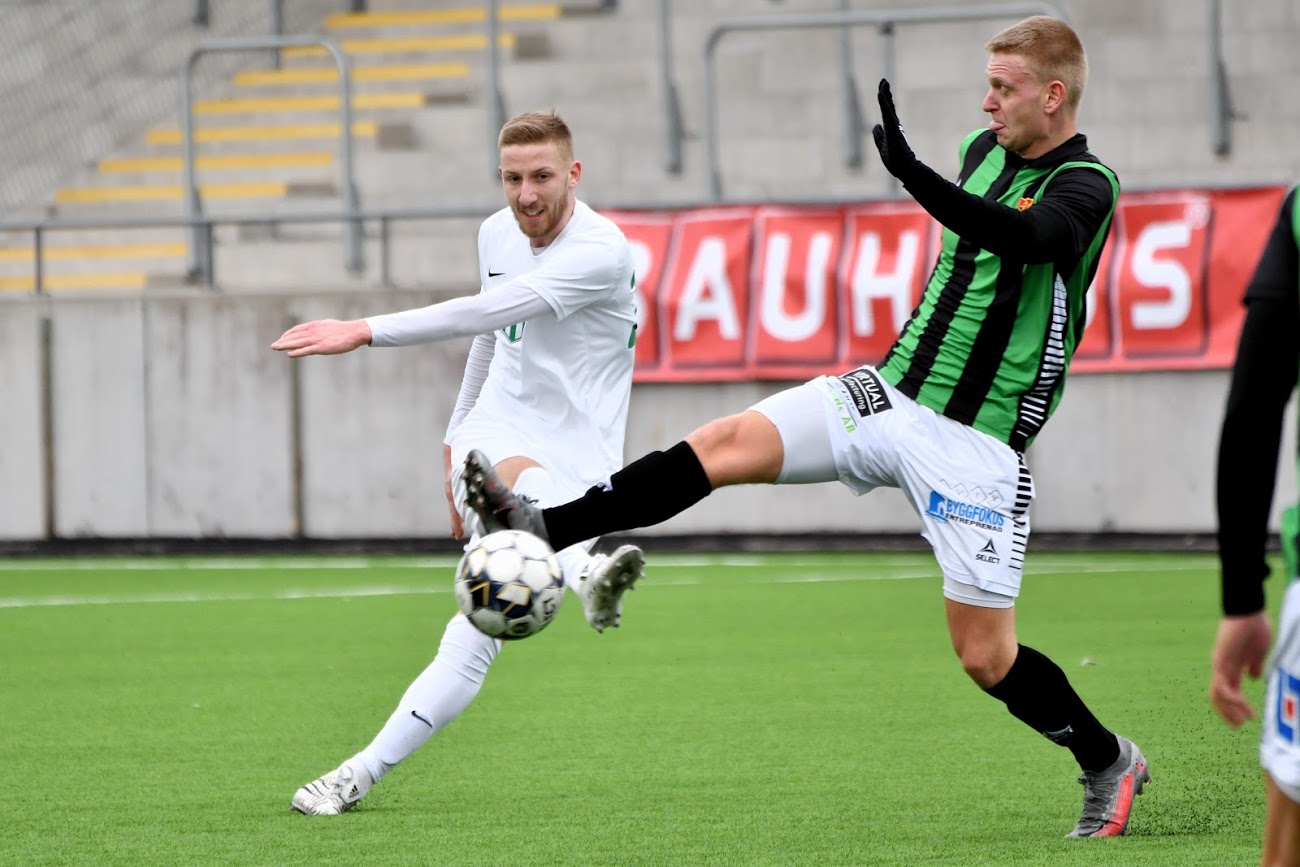 Två minuter in på stopptid tvingades Anton Fagerström till en kvalificerad räddning när Nikola Ladan sköt från distans. Mittfältaren samlade upp en rensning efter en högerhörna och avlossade ett skott med högerfoten mot det vänstra krysset. Fagerström reagerade snabbt och stoppade bollen med båda nävarna nära ribban och lagen gick till pausvila med 0–0 på resultattavlan.