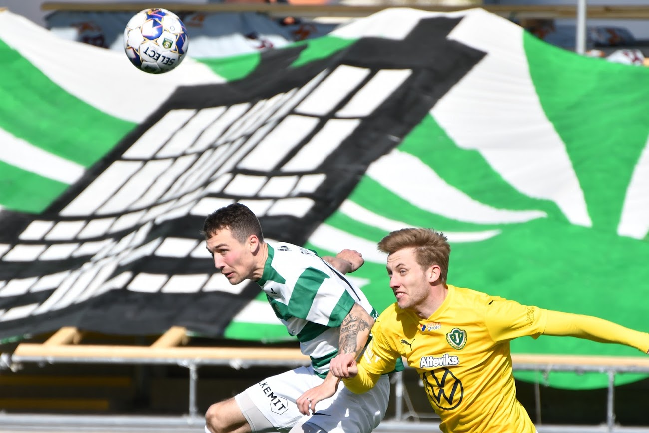 Med halvtimmen spelad gick den förre VSK-spelaren Petar Petrovic på avslut från distans i en