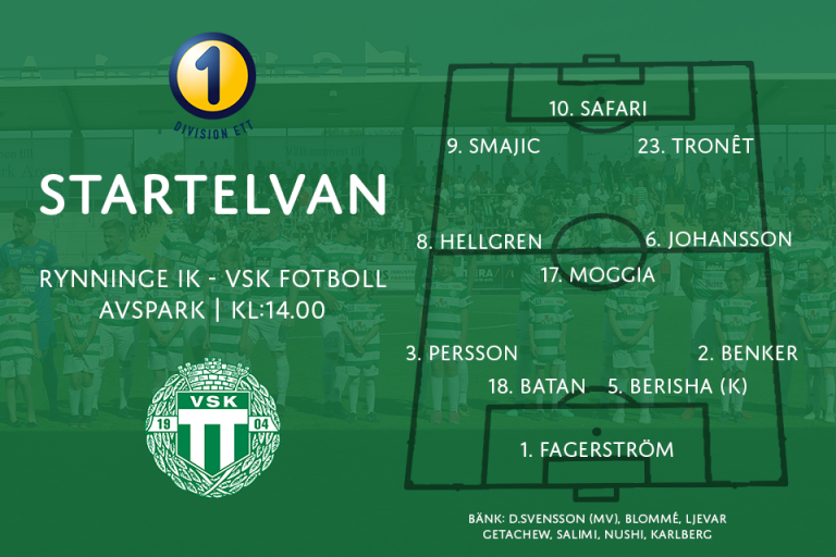 Här ovanför ser ni VSK Fotbolls laguppställning till bortamatchen mot Rynninge IK, avspark 14.00.
