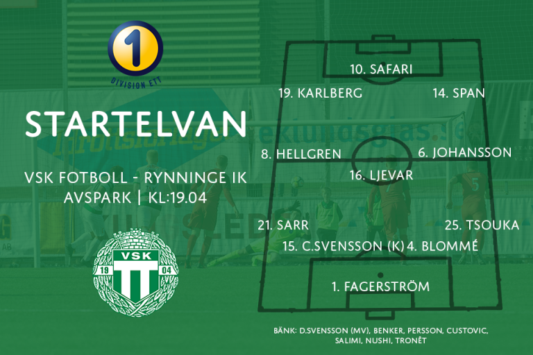 Här ovanför ser ni VSK Fotbolls laguppställning till hemmamatchen mot Rynninge IK, avspark 19.04.