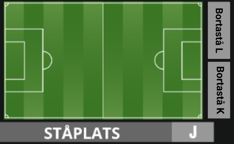 Det är gemensam entré för samtliga tre sektioner och den finns mellan sektion J och K i arenans nordöstra hörn. Det är öppet till alla sektionerna från entrén men du kan inte ta dig in på ordinarie ståplats. Toaletter finns på varje sektion. Samtliga besökare till dessa sektioner kommer att visiteras vid entré.