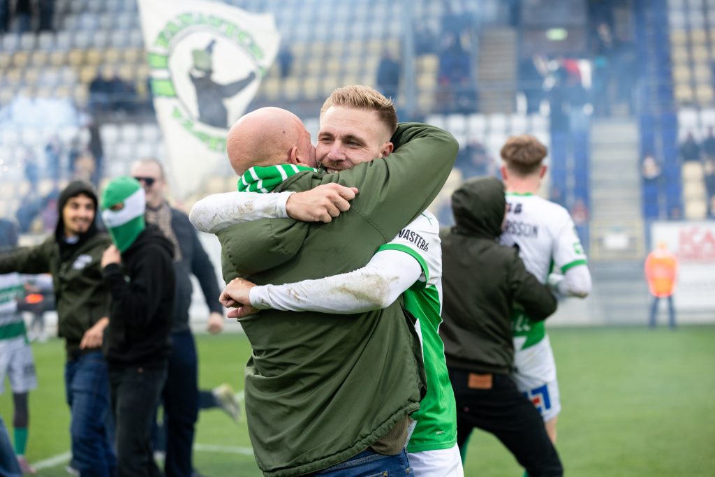 Allsvenskan – här kommer Grönvitt! Vilka härliga scener som utspelade sig i Falkenberg gångna helgen när laget säkrade avancemang till nästa års Allsvenska. Men innan vi blickar fram mot den ska Superettan avslutas och inte minst, vår lagkapten och klubbikon Simon Johansson ska tackas av.