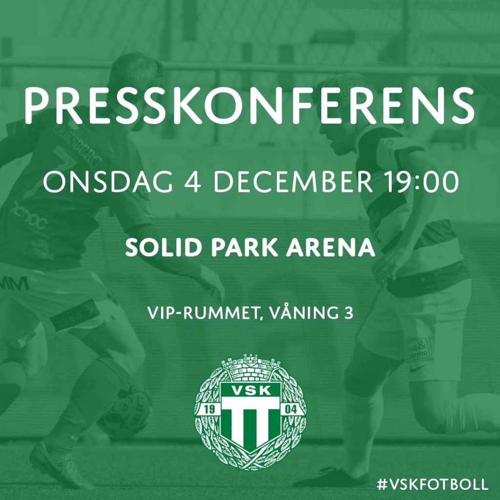 VSK Fotboll kallar till presskonferens Ons 4 December kl. 19.00