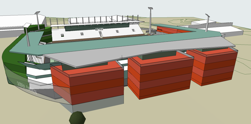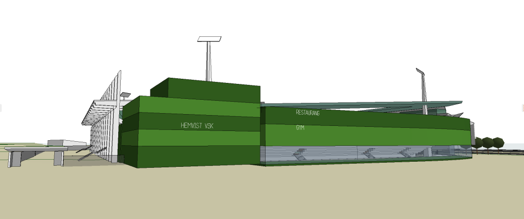 • Nya kontor och gemensamma ytor för VSK Fotboll i det tomma hörnet av arenan som vetter mot huvudentrén.