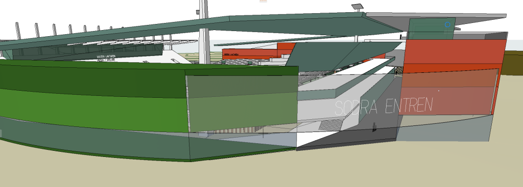 I Fas 3 kommer vår fulla arenavision in i bilden. Då är ambitionen att addera ytterligare kommersiella ytor ovanför den norra läktaren samt bygga ett extra etage på den läktare som i dag är ståplats.