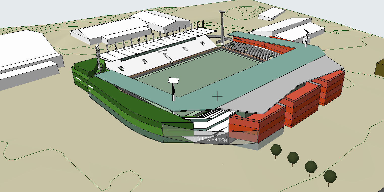 • En permanent bortaståläktare, med möjlighet till servering, så att bortasupportrar kan placeras där i stället för i Plåthallen.